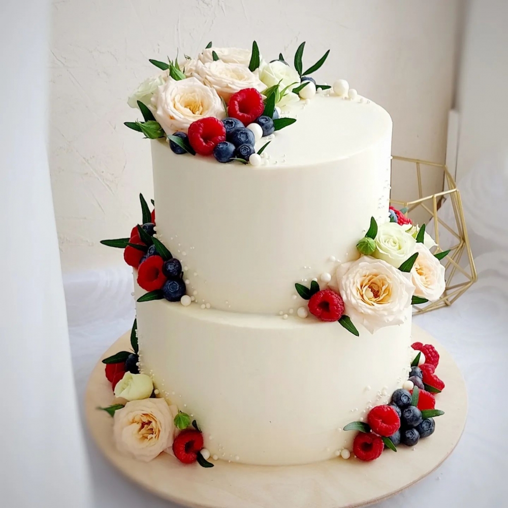 Торт с ягодами и цветами